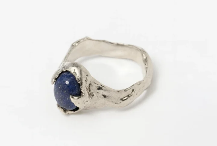 Engastado con un lapislázuli profundo, este anillo evoca el movimiento de las olas y la profundidad del océano.